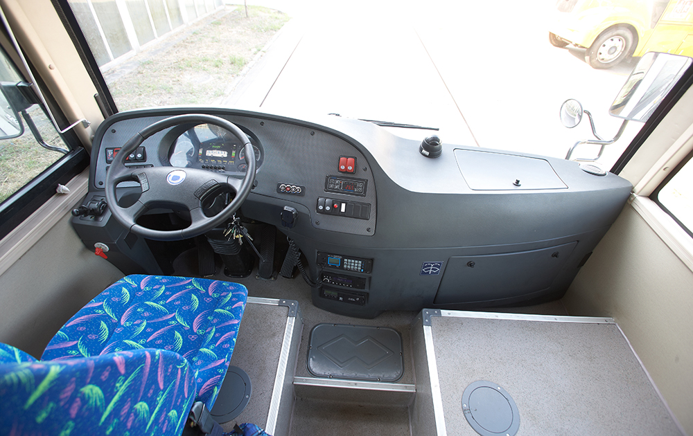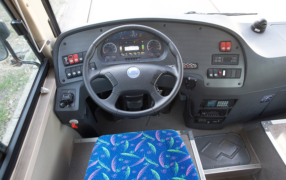 整車低地板設計,配備ECAS懸架系統(tǒng),駕駛區(qū)安裝氣囊減震座椅、全液晶儀表,小型智能嵌入式投幣機,一體式司機包圍結構,提高駕乘舒適性和安全性;