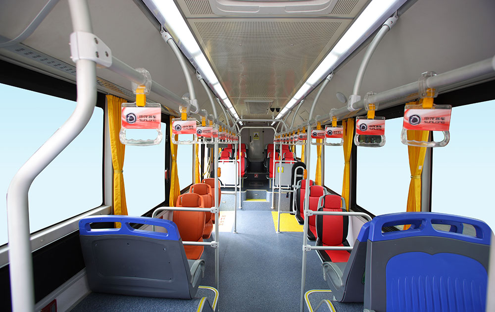 整車低地板設(shè)計,配備ECAS懸架系統(tǒng),駕駛區(qū)安裝氣囊減震座椅、全液晶儀表,小型智能嵌入式投幣機,一體式司機包圍結(jié)構(gòu),提高駕乘舒適性和安全性;